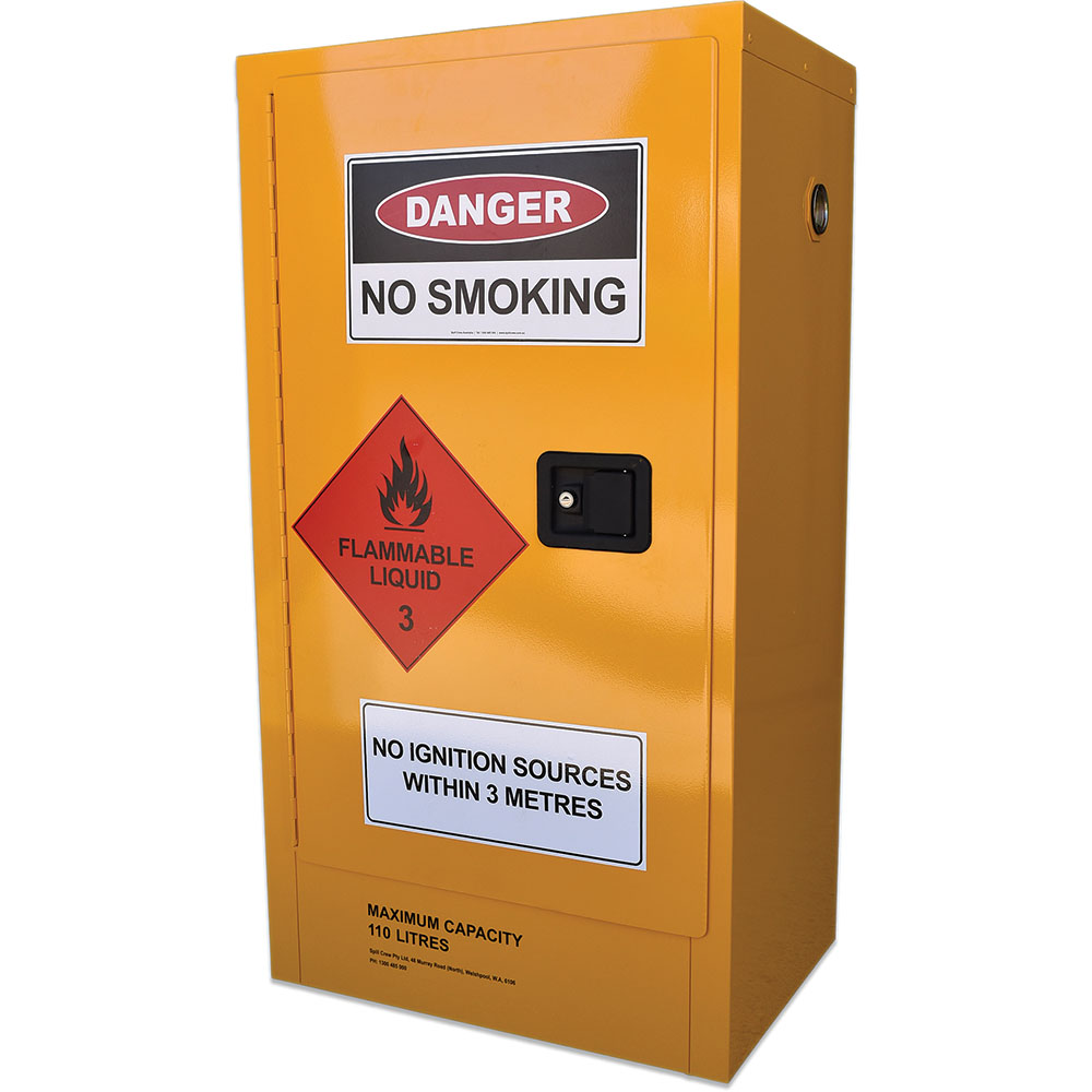 Class 3 liquids should be stored in this 110L flammable liquids cabinet to prevent and capture any accidental spillage. Spill Crew flammable storage cabinets: