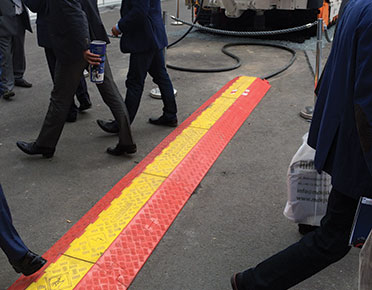 Linebacker® Heavy Duty Cable Protector with hinged lid provides a safer crossing for vehicles and pedestrian traffic while protecting valuable electrical cables and hose lines from damage in extreme weather conditions and work environments.