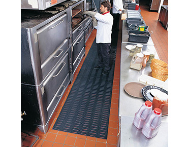 - Ribbed underside adds anti-fatigue value and channels liquid away from the mat